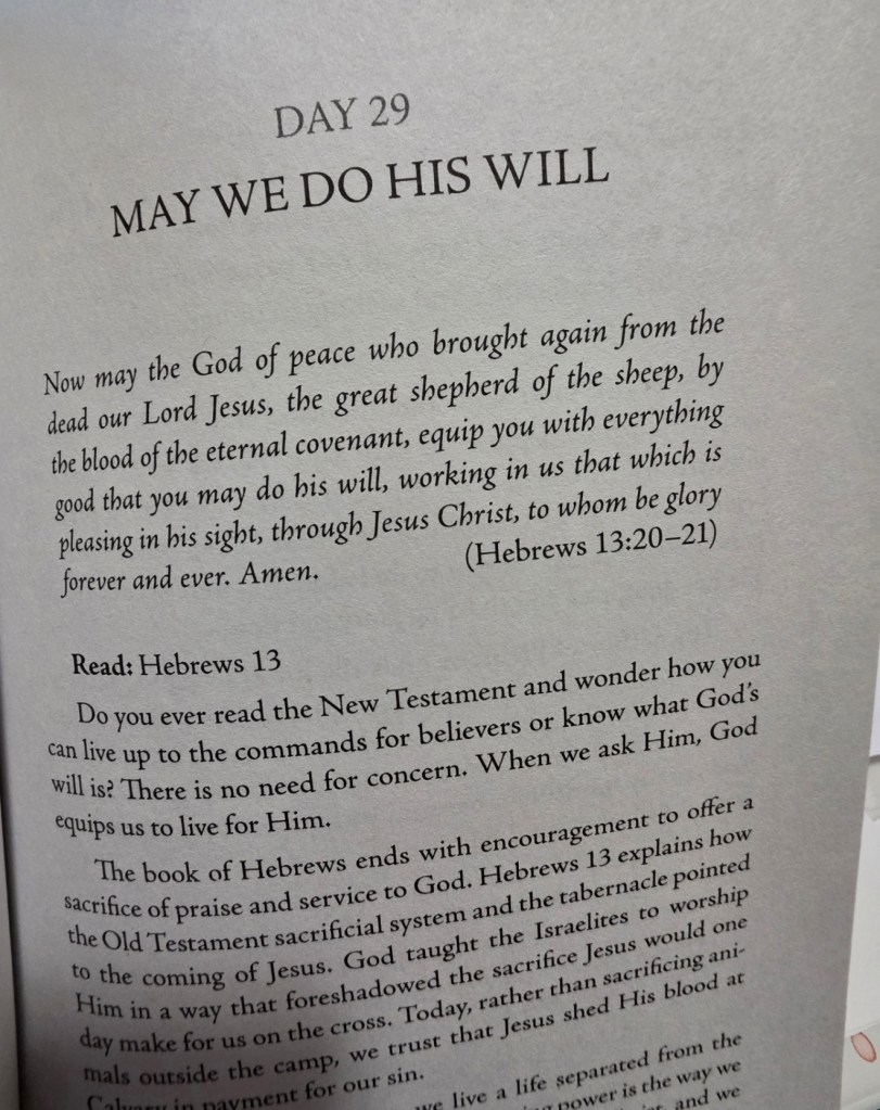 Each section begins with scripture, includes a section of scripture to read (from a few verses to a chapter), and asks us a question to get us thinking about our own lives. She then describes what takes place within the section of scripture we’ve just read before bringing it back to us, our life, our circumstances, our walk and relationship with Him. At the end of each section, she gives us a prayer to pray.