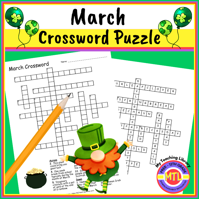 March St. Patrick’s Day Crossword Puzzle: Fun Holiday Activity: