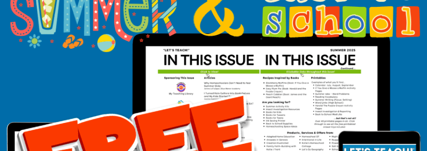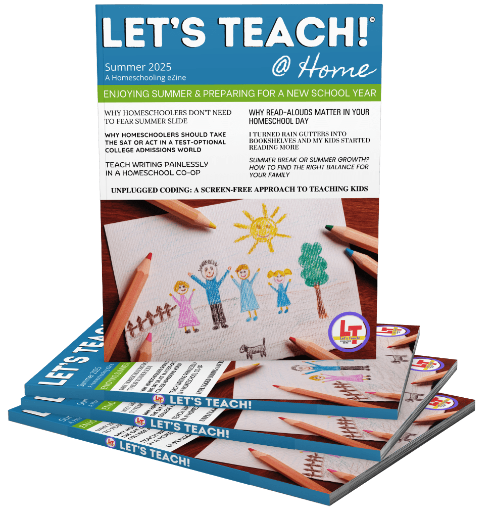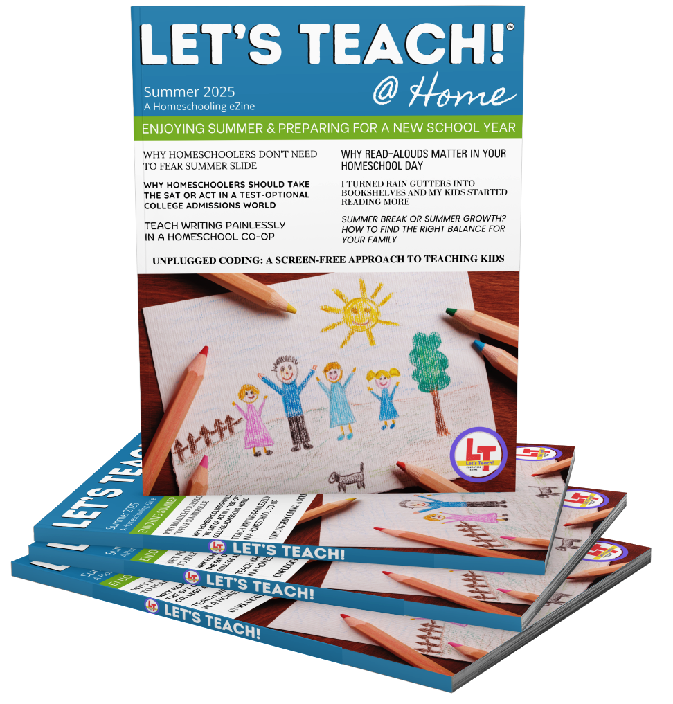 Why is “Let’s Teach!” @Home eZine a favorite of tens of thousands of homeschooling families? Every issue is jam-packed with homeschooling advice, information, discounts and freebies from homeschool providers who want you and your children to flourish!