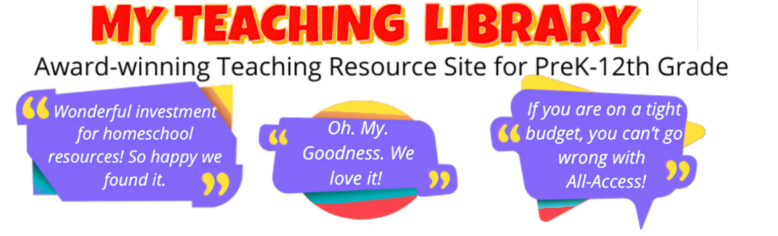 My Teaching Library is an award-winning site for teachers and homeschooling families! MTL provides quality, affordable resources for PreK-12th grade. All materials are downloadable thus instantly accessible upon purchase. In addition to purchase every resource individually, customers may purchase an ALL ACCESS membership making our resources even more affordable!