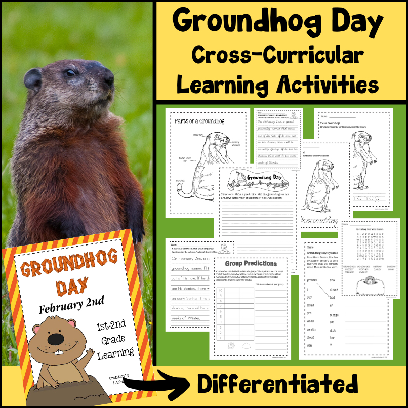 Create engaging lessons celebrating Groundhog Day this February and help student practice important Language Arts and Math skills while learning fun facts about these little mammals! Students will practice handwriting skills, syllable work, critical thinking, sentence writing, predicting and graphing and learn the parts of groundhog and fun facts such as groundhogs are also known as woodchucks, how long they live, where they live (habitat), what they eat and more!