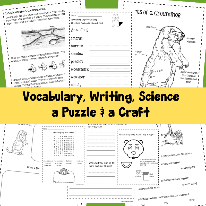 • – Several handwriting pages are included. These range from writing the word, groundhog, writing associated vocabulary and a one page explanation of ‘Phil’ and how he predicts the weather based on his shadow. Handwriting copy work pages are in two styles (differentiated) – manuscript and cursive.